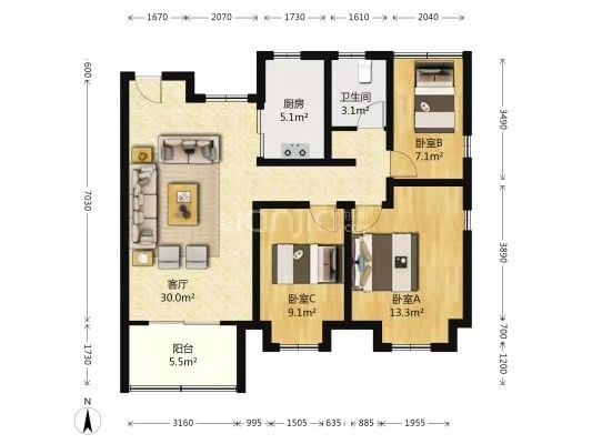 北城中环城精装三室黄金层97.89平方远离铁路满五唯一58万