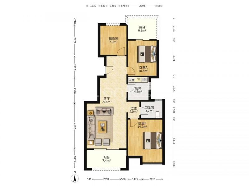 3室2厅 1厨 1卫 2阳台