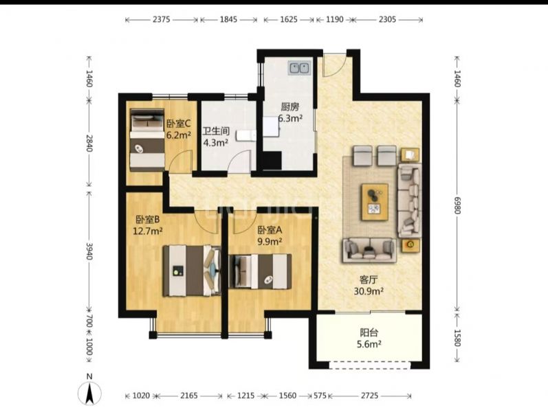 3室1厅 1厨 1卫 1阳台