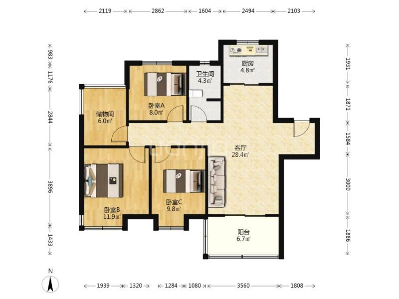 弘阳时光里四室两厅一卫一厨107平方赠送十个平方123万急售好楼层全天采光看房方便钥匙在手直接拎包入住
