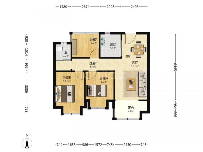 北麓雅苑豪华装修品牌家电未住人85+8平方77万
