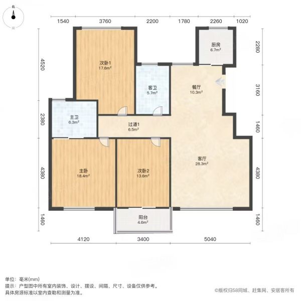 3室2厅 1厨 2卫 1阳台
