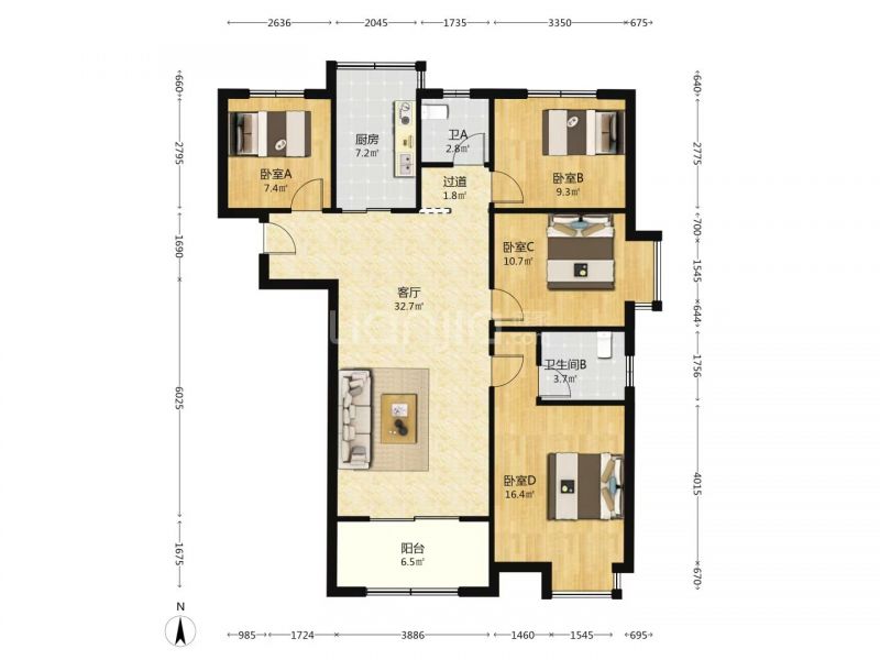 4室2厅 1厨 2卫 1阳台