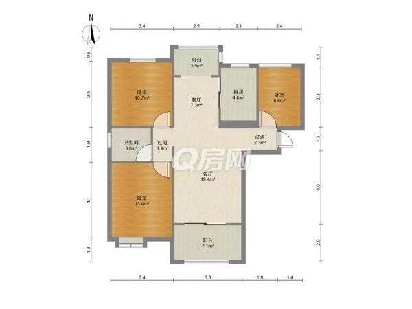 3室2厅 1厨 1卫 1阳台