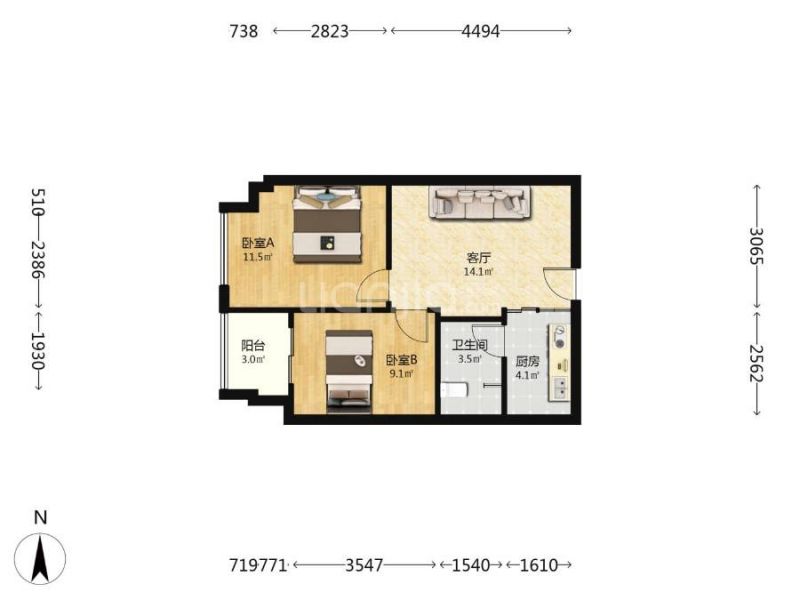2室1厅 1厨 1卫 1阳台