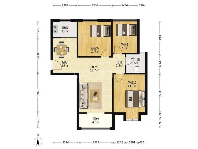 北城京城国际三室两厅一厨一卫,高档装修未住过人看房方便洋房88.5平方,另外赠送15个平方急售89.8万