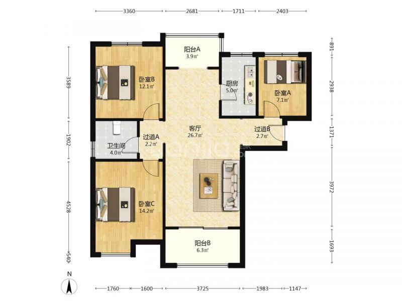 | 3室2厅 | 86.00m² | 南 | 中装 | 住宅 |