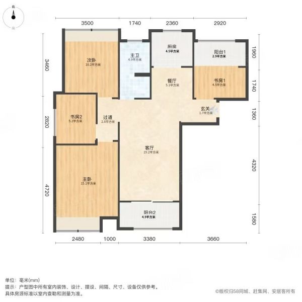 御景嘉苑北区108平 四房两厅 全屋杉木芯实木板,通铺鱼骨纹木纹砖