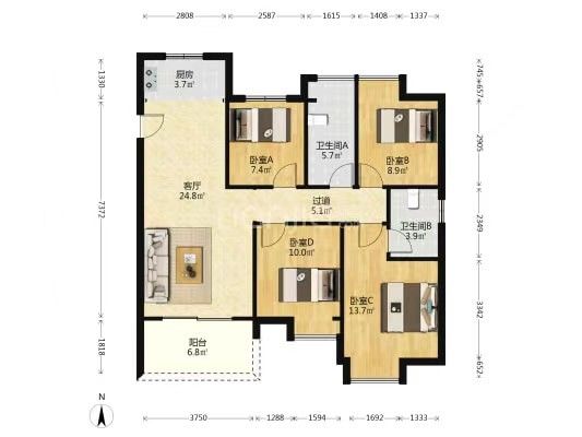 | 4室2厅 | 108.00m² | 东 | 精装 | 住宅 |