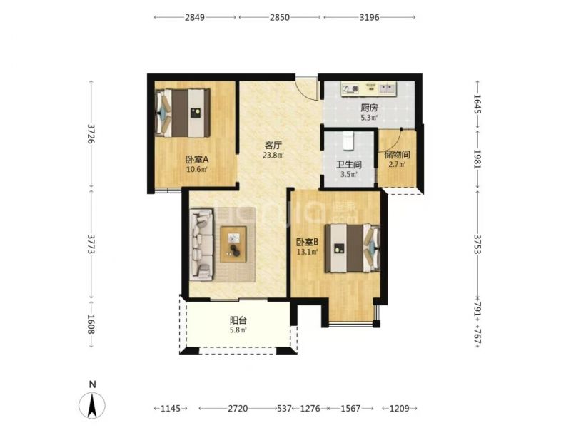 105m²/3室2厅